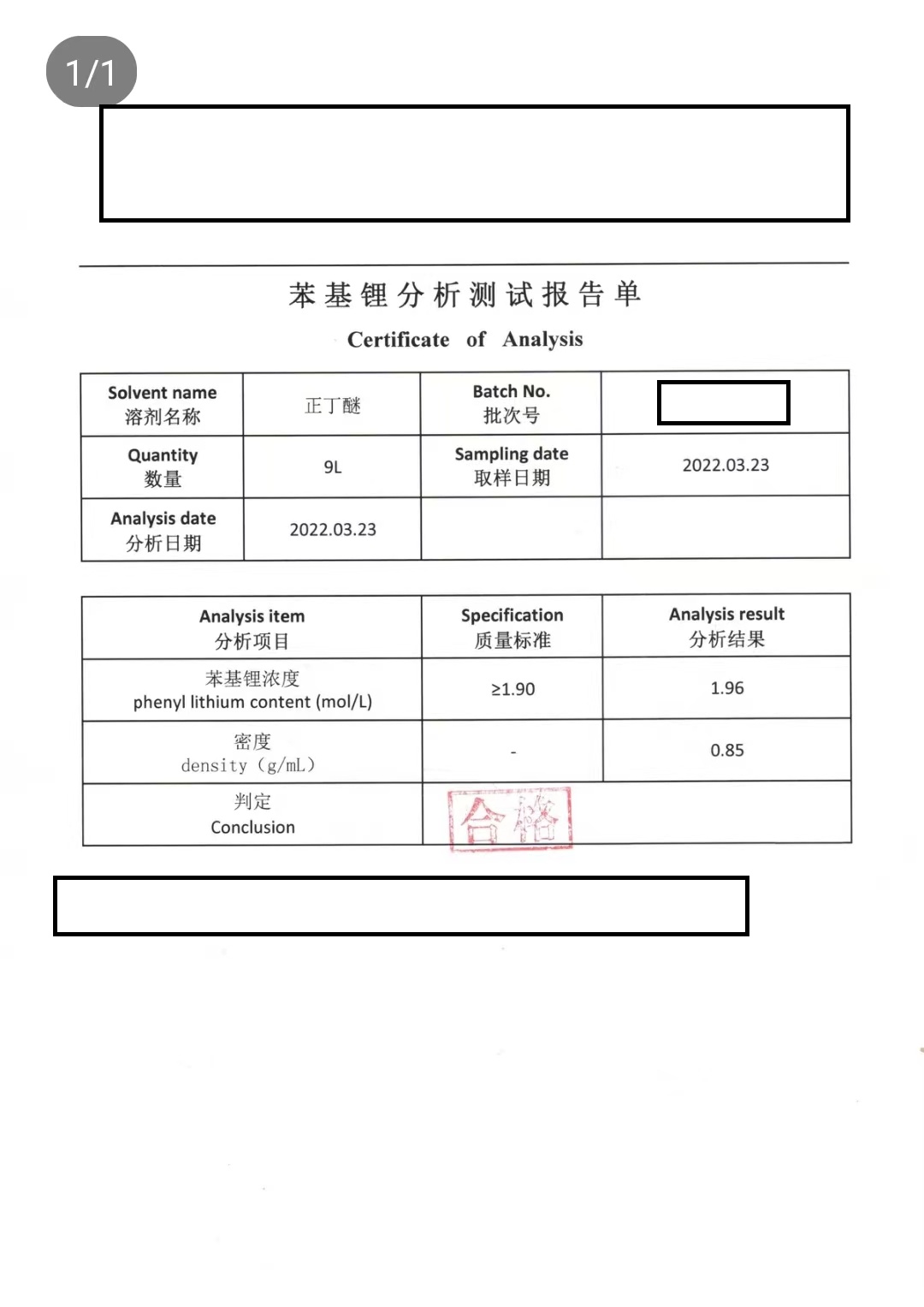 | 製品名 | フェニルリチウム (n-ブチルエーテル溶液) | |