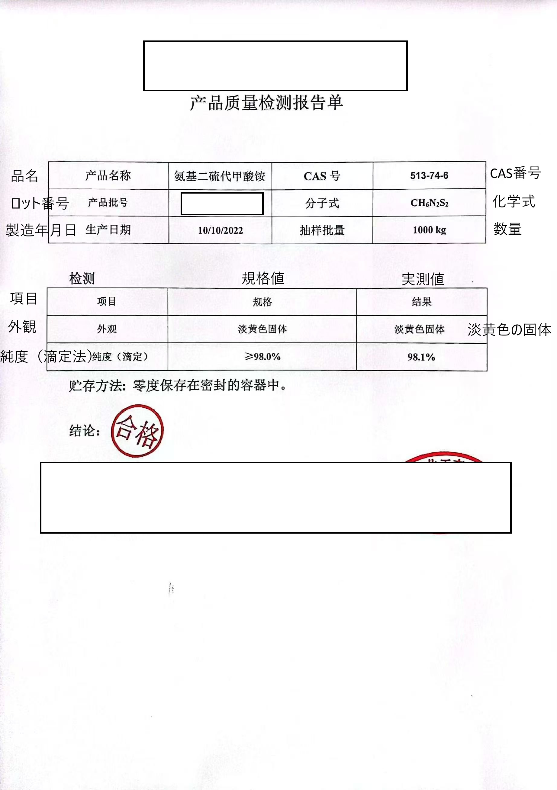 | 製品名 | ジチオカルバミン酸アンモニウム | |