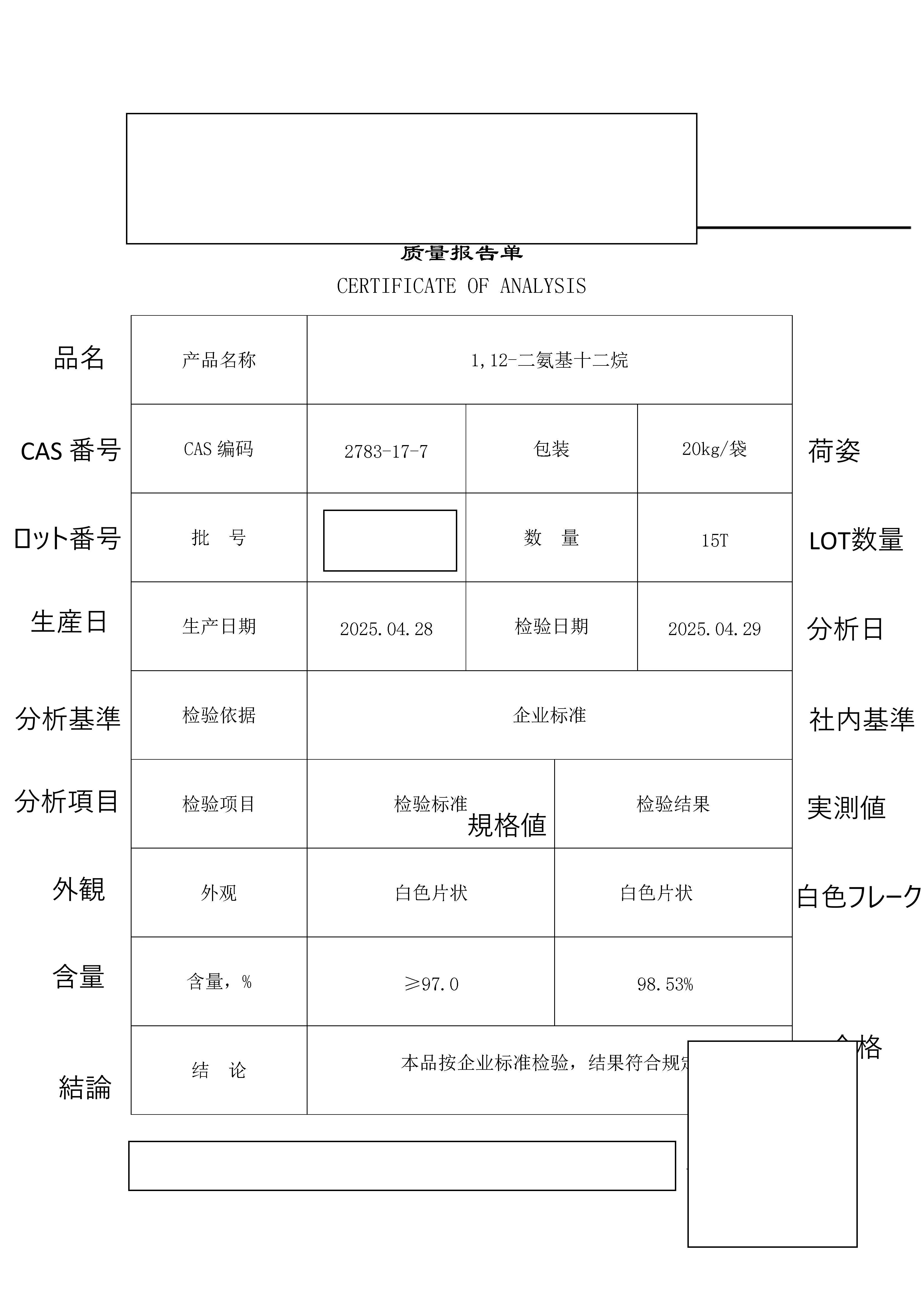 1,12-ジアミノドデカン の構造式 1,12-ジアミノドデカン の化学構造