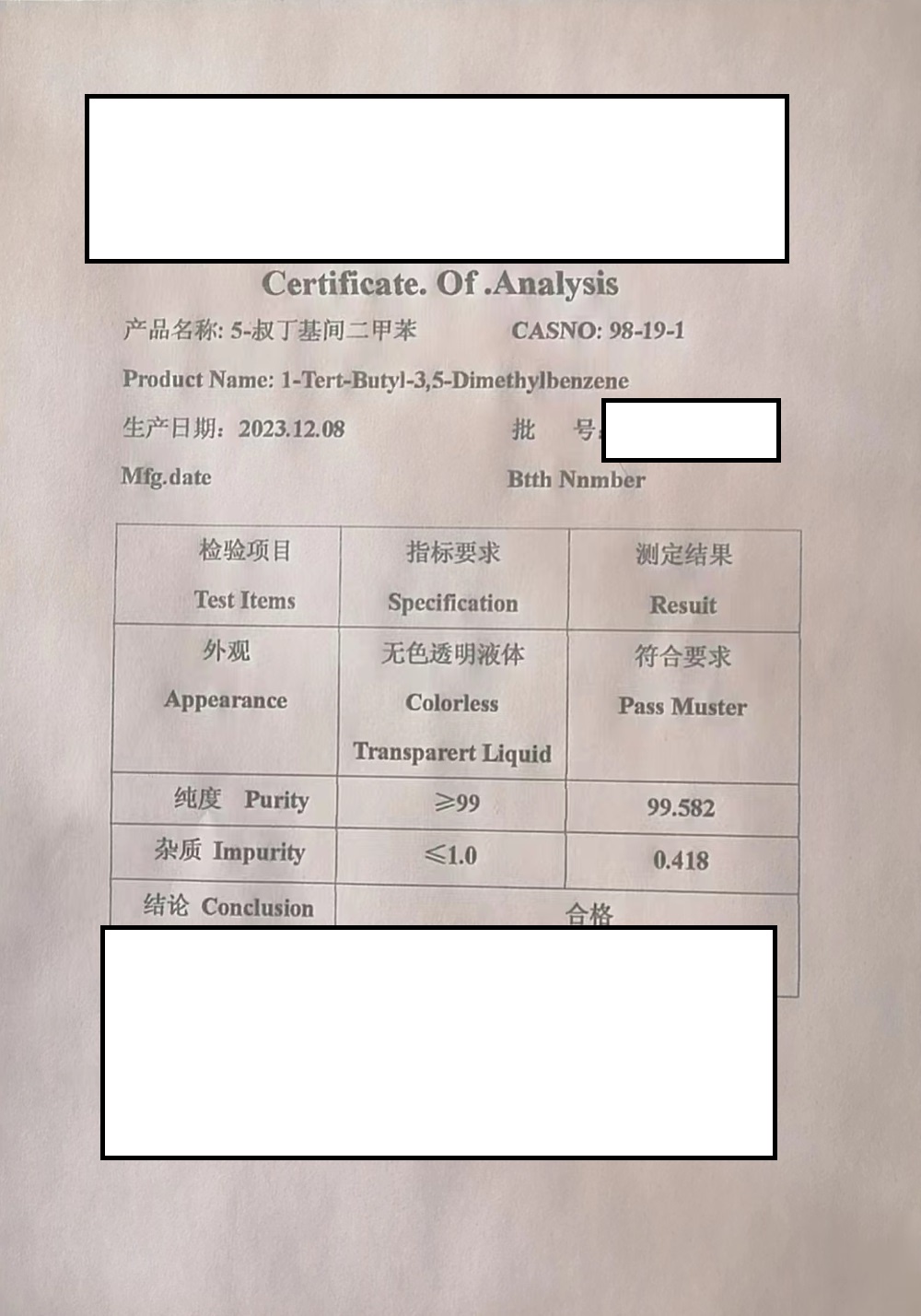 | 製品名 | 5-tert-ブチル-m-キシレン | |