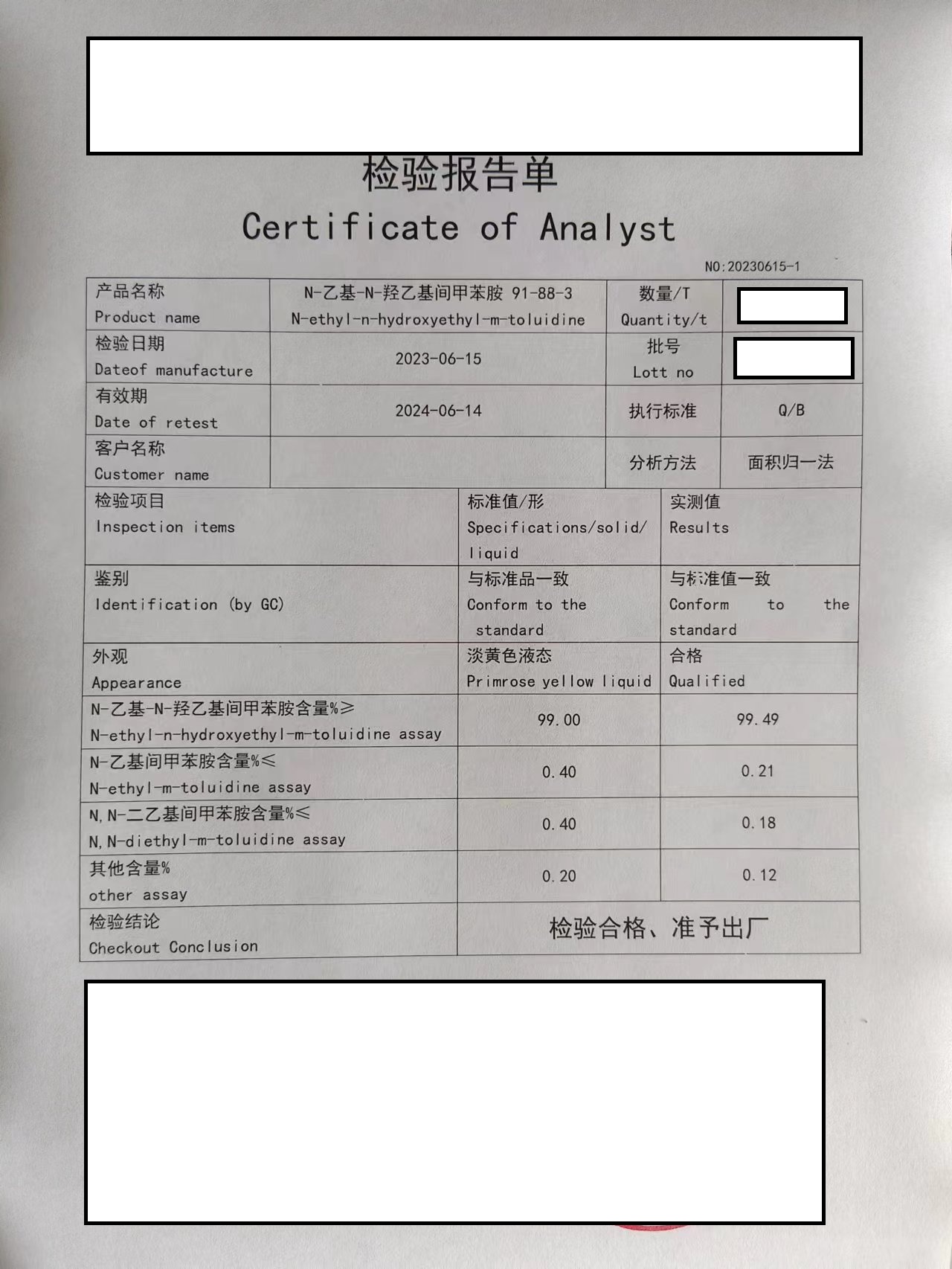 製品名 N-エチル-N-2-ヒドロキシエチル-m-トルイジン