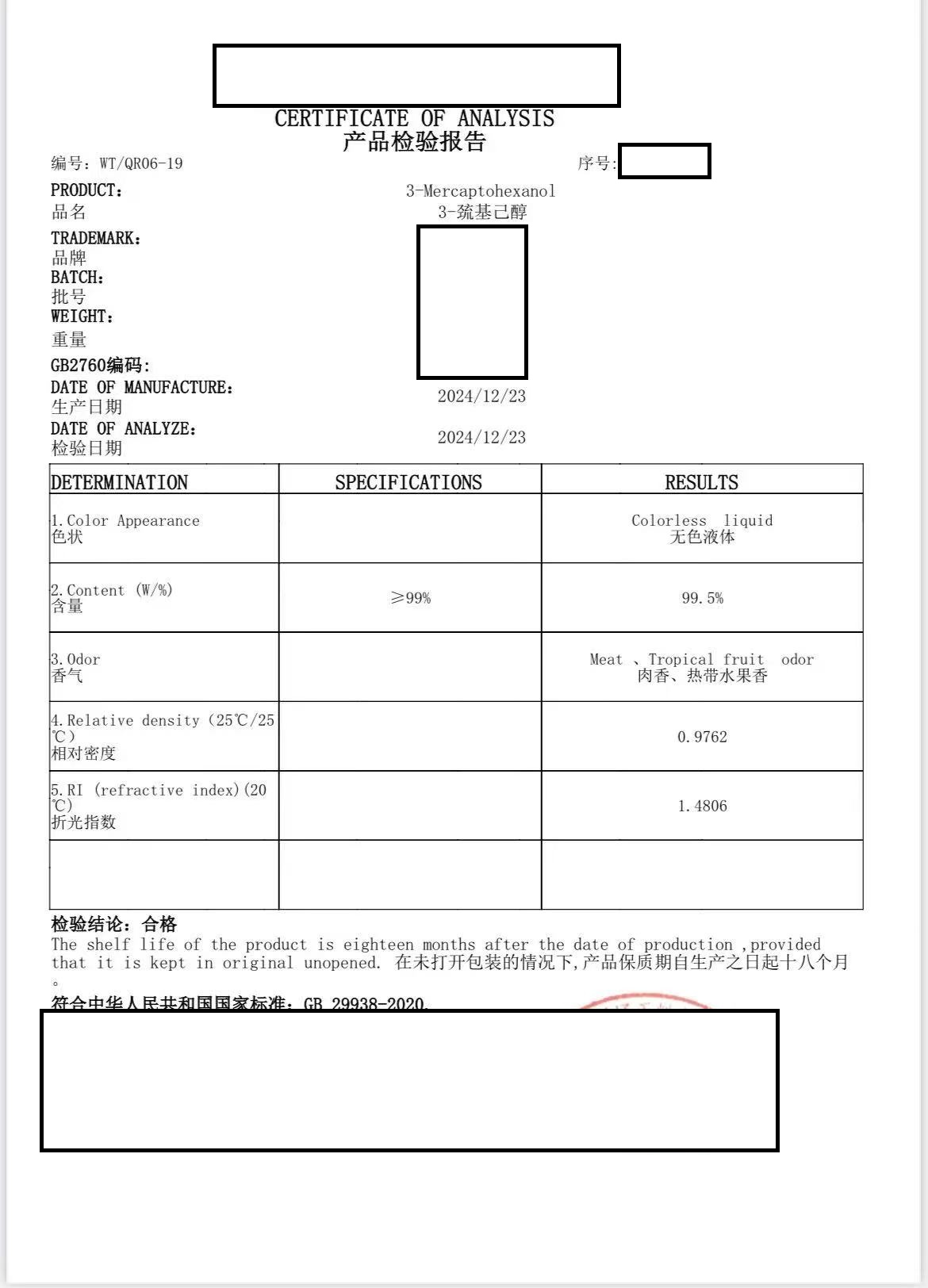 | 製品名 | 3-メルカプト-1-ヘキサノール | |