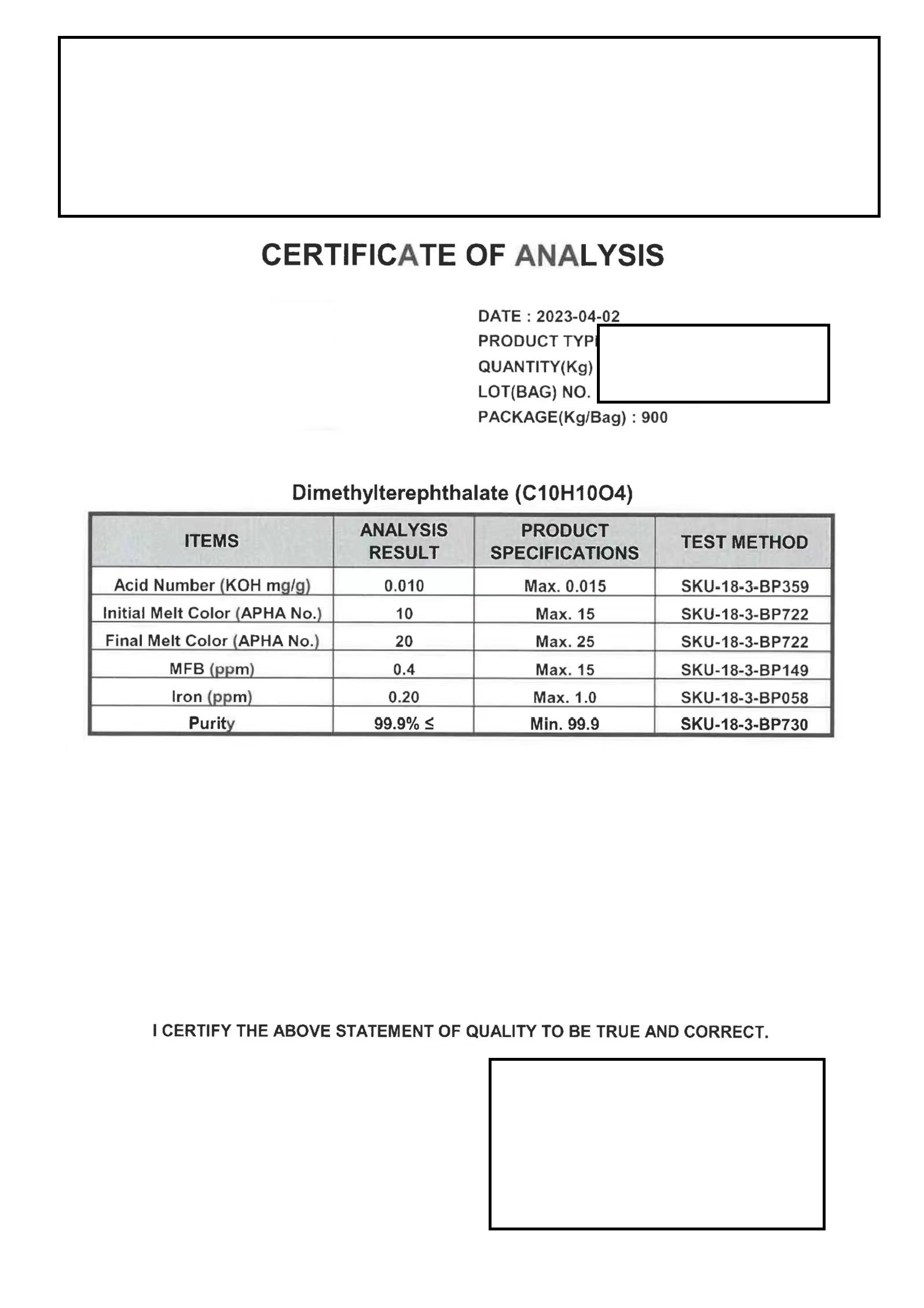 | 別名 | DIMETHYL TEREPHTHALATE Dimethyl p-phthalate Dimethyl 4-phthalate |