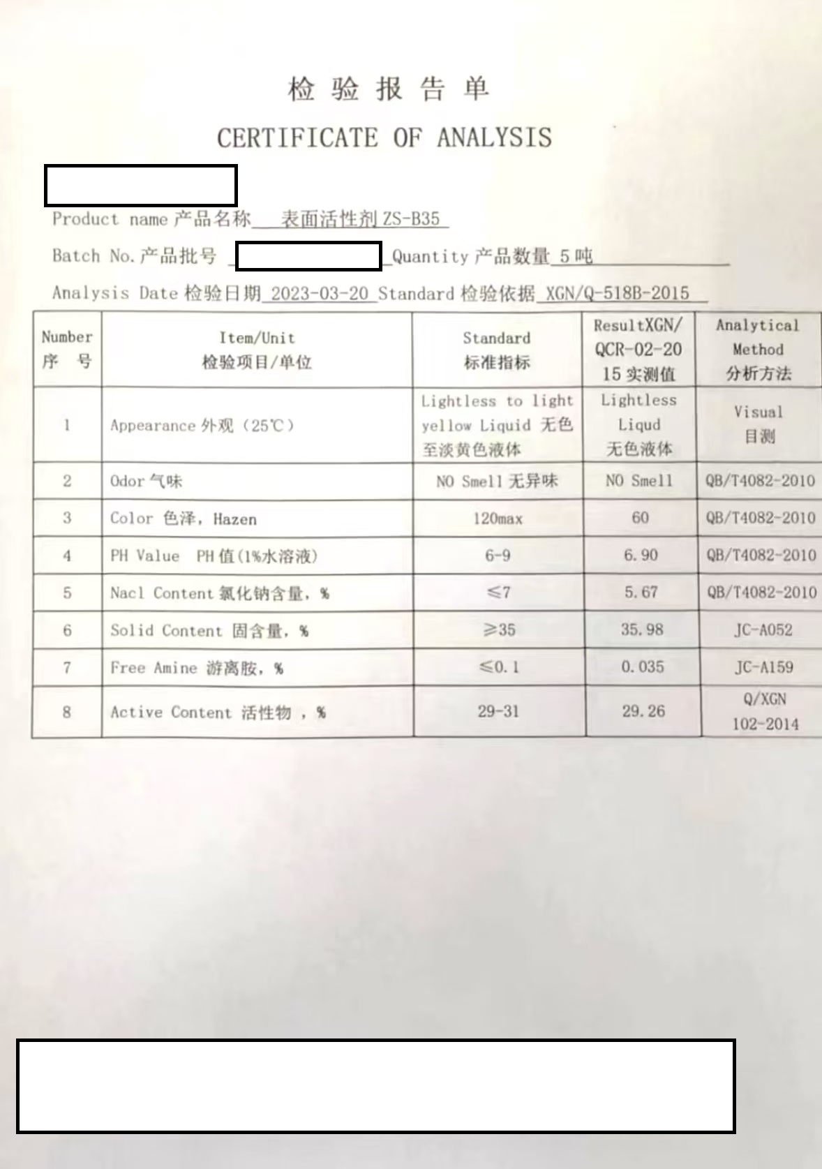 | 製品名 | ヤシ油脂肪酸アミドプロピルジメチルアミノ酢酸ベタイン | |
