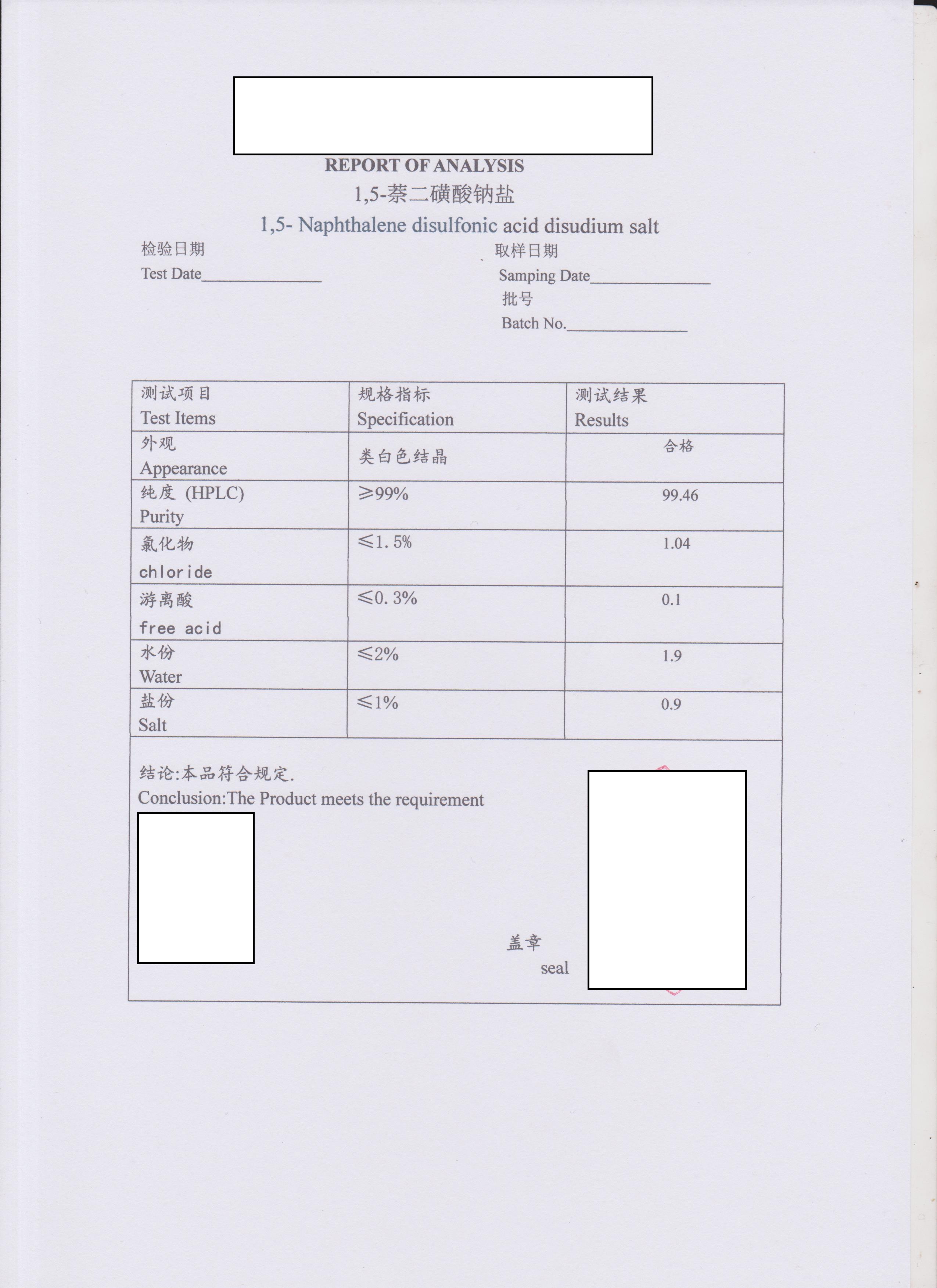 | 製品名 | 1,5-ナフタレンジスルホン酸二ナトリウム | |